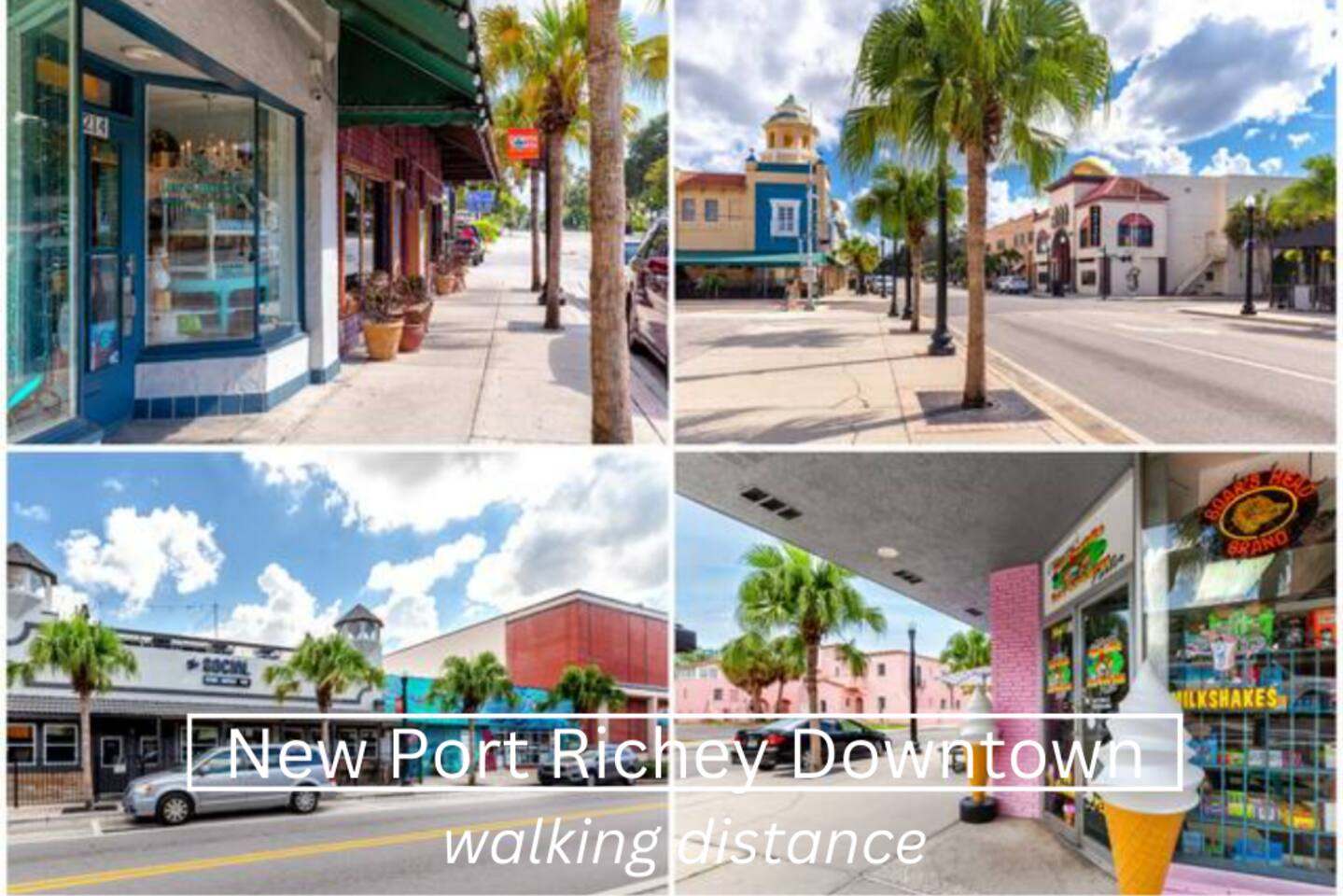 You’re just STEPS from downtown New Port Richey where all the restaurants and shops are. This location is 15 min to Howard Beach and Green key is 5 min away. Tarpon Springs is about 20min where the famous Sponge Docks and restaurants can be found. Clearwater Beach, Honeymoon Island and Dunedin downtown are 30-40min away.