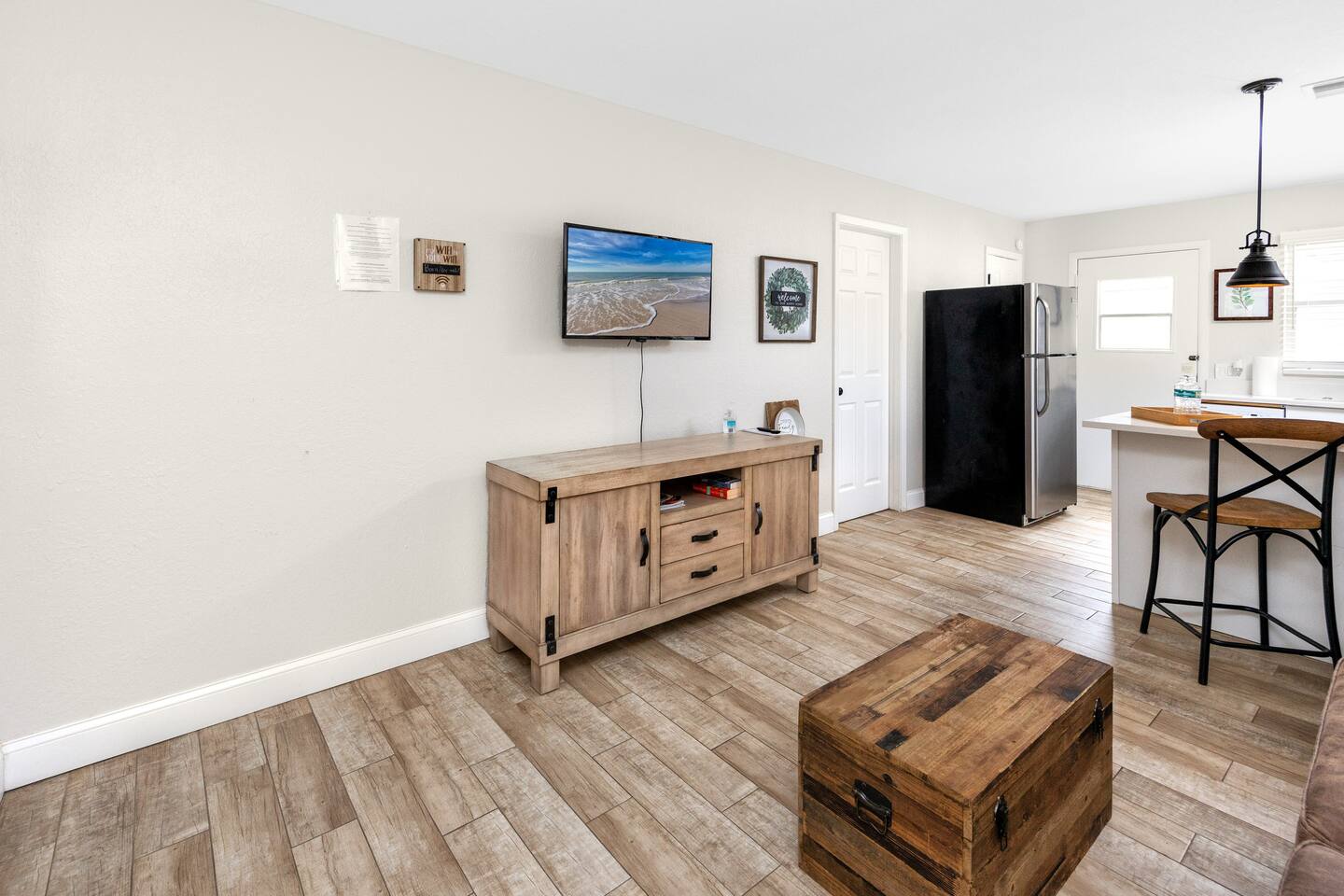 ✨ Modern Coastal Retreat in Downtown New Port Richey Enjoy this beautifully remodeled 1-bedroom private unit just steps from historic downtown and minutes to the beach. Everything is brand new, with a fully equipped kitchen, stylish living space, and a comfortable king bedroom with TV for relaxing nights in.
