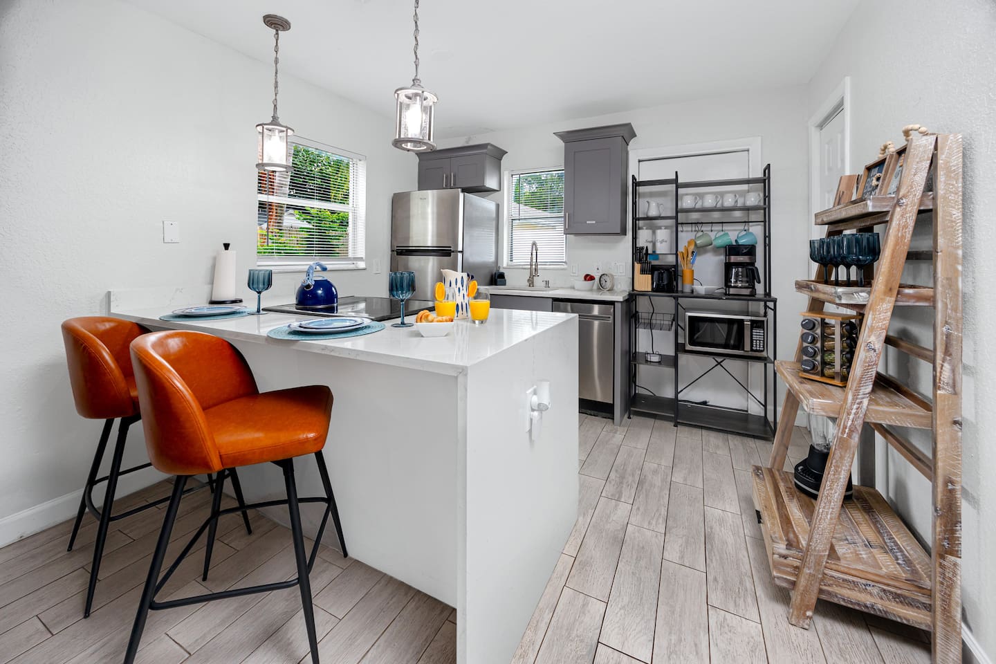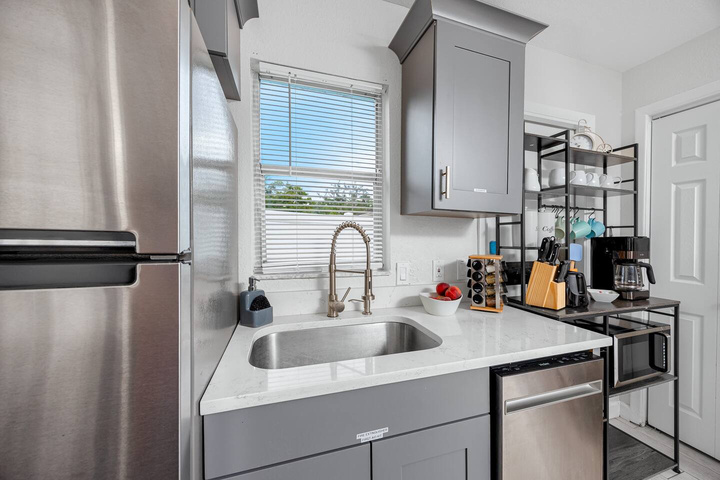🌴 Escape to your own cozy slice of paradise, just a block from historic downtown New Port Richey’s shops, cafés, and Sims Park, and only minutes from Green Key Beach. Freshly renovated 1BR retreat features all-new furnishings, a fully equipped modern kitchen, a TV in the bedroom for relaxing nights in, and a bright design with a step outside to a peaceful garden area. Whether you’re here for a romantic getaway, remote work, or Gulf Coast adventures, this home has it all.