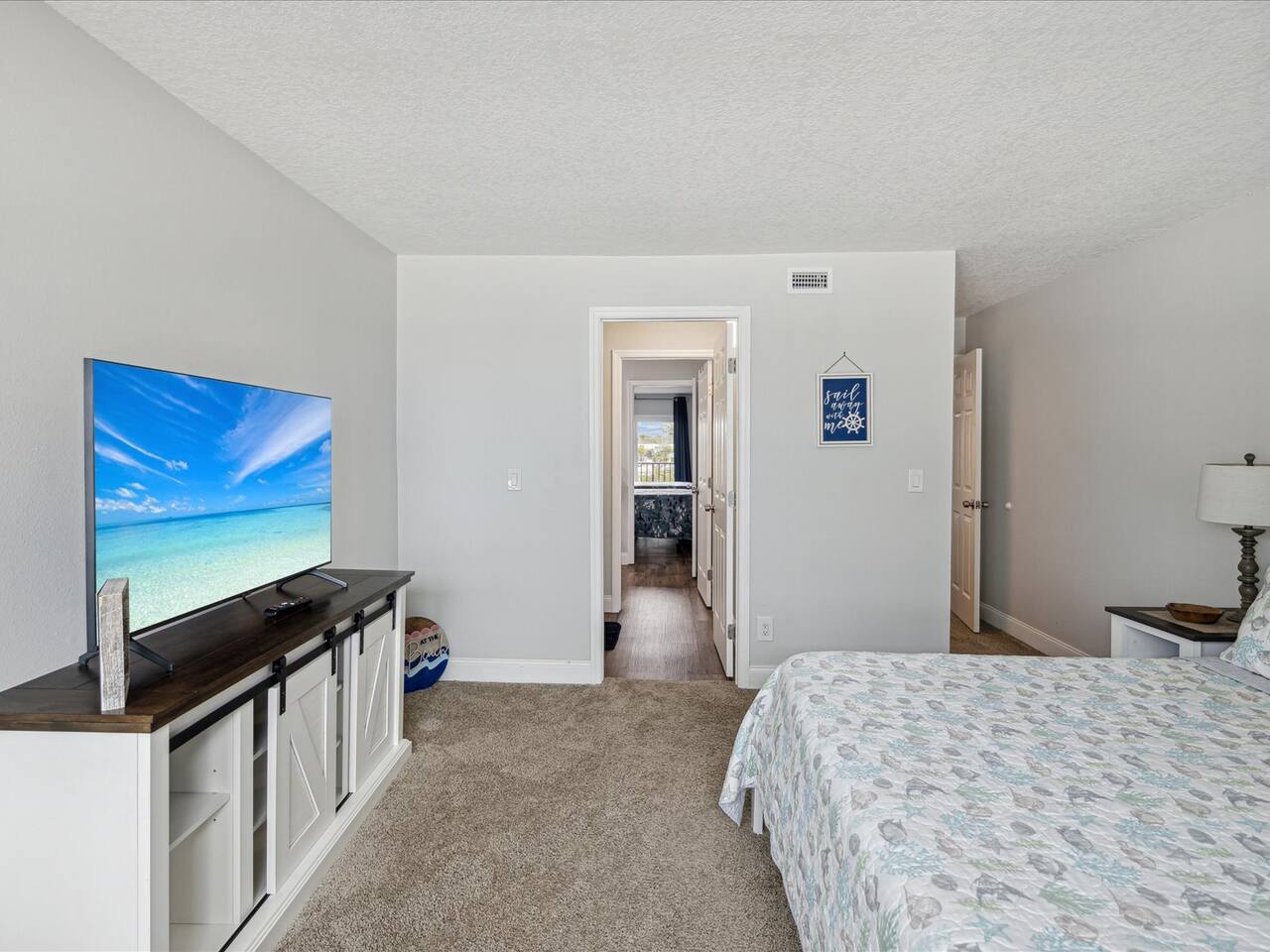 🌊 This 2BR, 2BA beach home offers breathtaking water views from every bedroom, each with its own TV. The 1st floor features a spacious living room with large TV, full kitchen, and bath, while the 2nd floor hosts both bedrooms and another bath. Relax on the balcony, enjoy the heated pool, BBQ grill, or sun loungers. With beach essentials, elevator access, and stunning views, it’s perfect for your coastal getaway. 🚤☀️