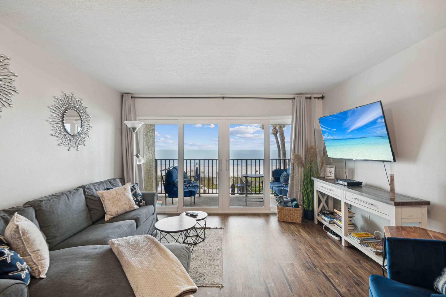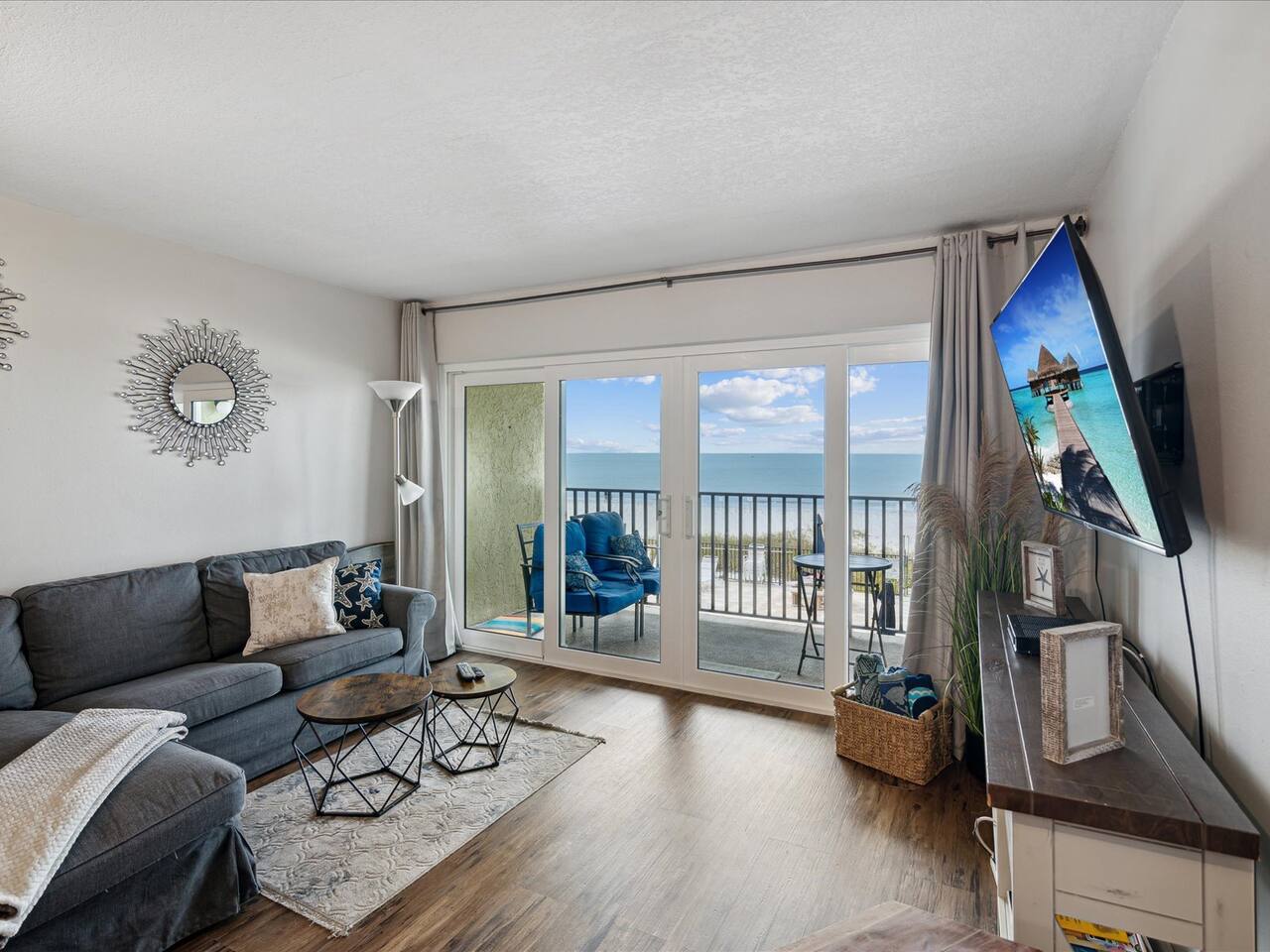 Welcome to your perfect beach getaway! 🌊 This stunning 2-bedroom, 2-bathroom home offers the ultimate coastal experience. The master bedroom features a king bed, while the second bedroom has two queen beds, all with TVs and breathtaking water views. Fall asleep to the soothing sound of waves outside your window. The first floor features a spacious living room with a large TV, a fully equipped kitchen, and one bathroom. Upstairs, you'll find the two bedrooms and a second bathroom. Enjoy the spectacular beach view from the balcony or take a dip in the heated pool. Ideal for family gatherings, the property includes a BBQ grill, sun loungers, and all the beach essentials you’ll need. 🏖️ Located within walking distance of popular restaurants, this gated home offers privacy and security, giving you peace of mind while you relax and enjoy the coast. **Amenities** ✔ King bed with TV ✔ 2 Queen beds with TVs ✔ TV in the living room ✔ Pack n play ✔ Elevator in the building ✔ Paid laundry - shared facilities located in the building (not inside the home) ✔ Board games & books/magazines ✔ Dishwasher, toaster, microwave, electric kettle ✔ Coffee machines (Keurig & regular) ✔ Heated pool, sun loungers, beach chairs & towels ✔ Beach umbrella, cooler, toys for kids ✔ BBQ grill ✔ Portable fans, hair dryer, room-darkening shades ✔ Complimentary toiletries ✔ Bathtub **Master Bedroom:** King bed, TV, cabinet, closet, lamp, and stunning beach views. **Bedroom 2:** Two queen beds, each with a TV, plus an attached bathroom. **Living Room:** Comfortable couch, TV, small desk, dining table, and glass doors with amazing beach views. **Kitchen:** Fully equipped with all cooking essentials, coffee bar, double coffee machine, blender, and toaster. **Heated Pool:** Shared pool area with beach chairs and towels for ultimate relaxation. Pool hours: The pool closes at dusk—approximately 7:30 PM during the summer months and earlier in the winter, depending on sunset and time changes. **Things to Do Nearby:** ✅ Beach days – swim, relax, or collect shells ✅ Indian Rocks Beach Nature Preserve – hike and spot wildlife ✅ Kayaking & paddleboarding – explore the waterways ✅ Splash Harbour Water Park – family fun with slides & lazy river ✅ Fishing charters & sunset cruises ✅ John’s Pass Village & Boardwalk – shopping & dining ✅ Local dining – Crabby Bill’s, Salt Rock Grill, Lulu’s Oyster Bar & Tap House, The Beach Bucket, Guppy’s on the Beach, Columbia Restaurant, Slyce Pizza Bar, Pajanos Pizzeria, Café de Paris Bakery, Kokomos Tiki Bar & Grill 🍽️ Experience the ultimate coastal escape with water views, beach access, and all the comforts of home!