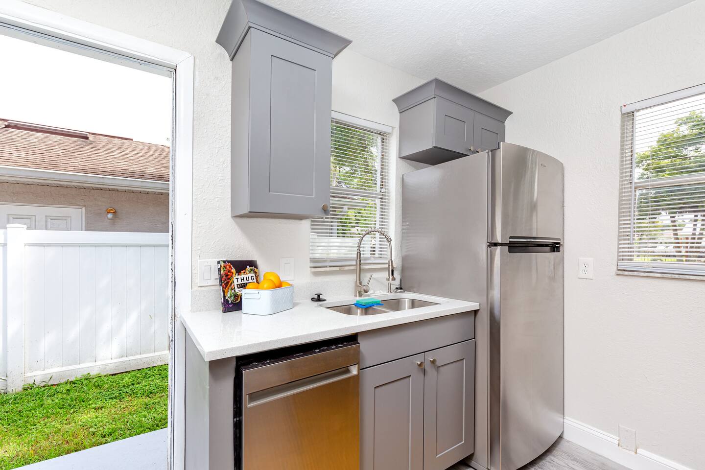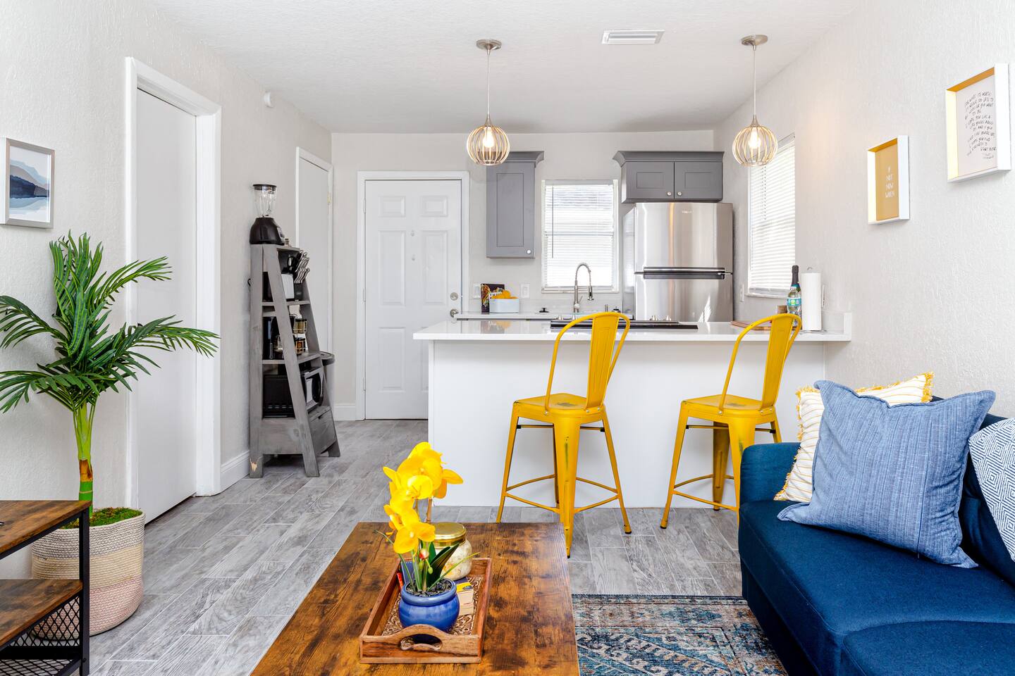 π΄ Welcome to our fully remodeled 1-bedroom, 1-bathroom home in New Port Richey! This cozy retreat features an open concept kitchen and living room, a King bed with fresh bedding, central AC, and a remodeled bathroom with a walk-in shower. Perfect for two adults with small kids, enjoy free WiFi, Netflix, and parking, plus a shared outdoor garden for morning coffee. Steps from downtown, shopping, restaurants, and Sims Parkβjust a 5-minute walk! β¨ β King bed with fresh bedding β <b>New Comfy & Larger Couch</b> β Pack and play available β Spacious shared yard β Fast Wi-Fi & Smart TV β Fully equipped kitchen (oven, fridge, microwave, cookware, dinnerware, utensils, spices, oil) β Coffee bar β β Beach chairs & towels β Complimentary toiletries & starter essentials β Free parking for cars, RV, boat, or motorcycle π **Bedroom**: King bed, soft lamps, ceiling fan, closet with storage, en-suite bathroom with bathtub & shower π **Living Room**: Comfortable couch, Smart TV with Netflix, small workspace π³ **Kitchen**: Fully stocked with all essentials and coffee bar π **Bathroom**: Fresh towels, toiletries, bathtub, shower π **Nearby Attractions**: * Sims Park: 5 mins * Green Key Beach: 10 mins * Tarpon Springs Sponge Docks: 25 mins * Florida Exotic Bird Sanctuary: 15 mins * Weeki Wachee Springs: 40 mins * Tampa Intβl Airport: 35 mins β¨ Whether youβre visiting for the beach, local dining, or a relaxing getaway, our home provides comfort, convenience, and a touch of charm for a memorable stay.